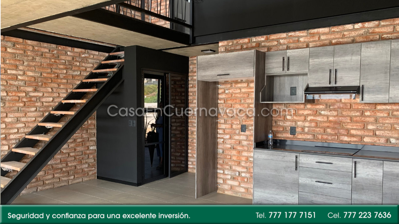 Casa tipo Loft con alberca y jardín propios, dentro de un fraccionamiento con vigilancia y acceso controlado.