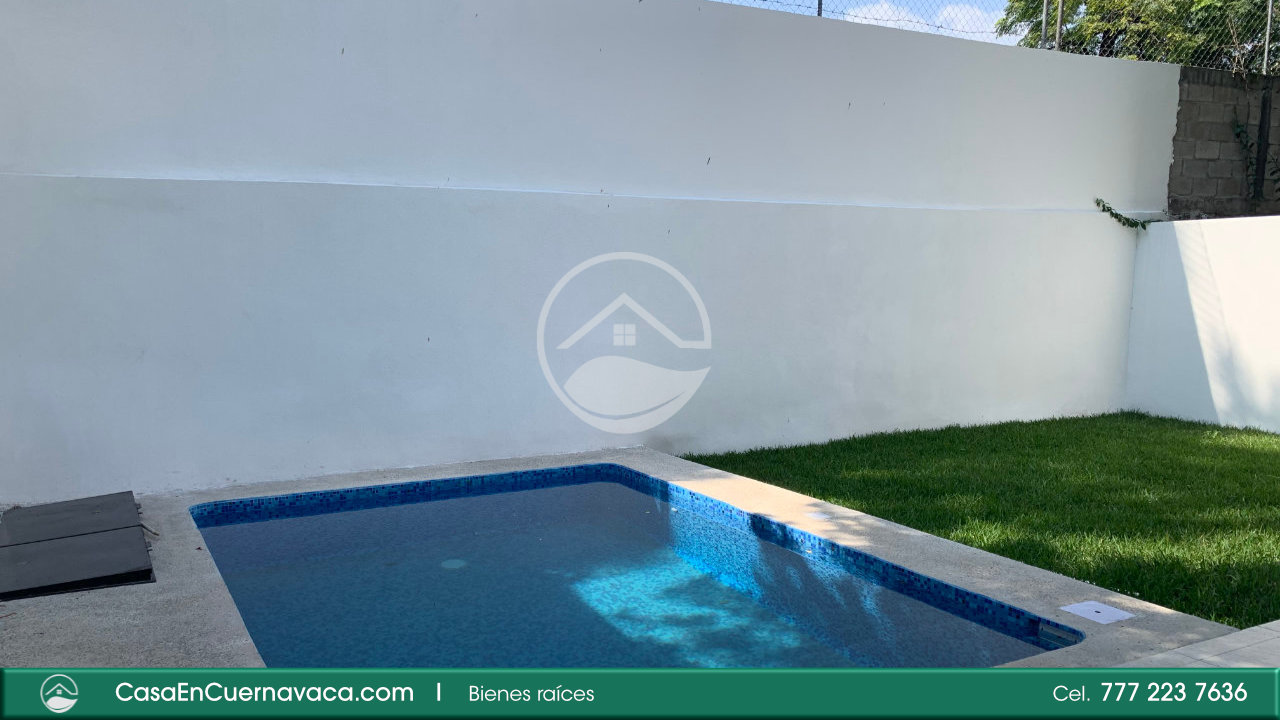 Muchas personas buscan una casa de una sola planta pero pocas la encuentran. Aquí tienes una casa que presenta las comodidades de los espacios amplios y bien distribuidos en un solo piso, con 4 recámaras, 3 baños, cocina integral, cuarto de servicio, jardín y alberca propios. Sus techos elevados brindan una gran iluminación y frescura. Cisterna de 14 mil litros y estacionamiento hasta para 3 autos. La casa se encuentra dentro de un fraccionamiento exclusivo con portón de acceso a un entorno arbolado que transmite paz y serenidad. Ubicada en el Centro de Jiutepec, de fácil acceso por Av. Cuauhnáhuac y Las Fuentes, tiene la ventaja de su cercanía con servicios, comercios, bancos, escuelas, etc. Una gran oportunidad que no debes dejar pasar si estás buscando una casa con todo el comfort de un solo piso.